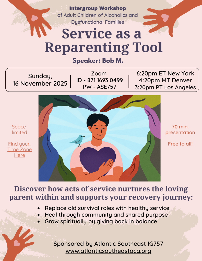 Discover how service nurtures the loving parent within and supports the recovery journey, and how to make service more accessible to fellow travelers in all stages of recovery.
