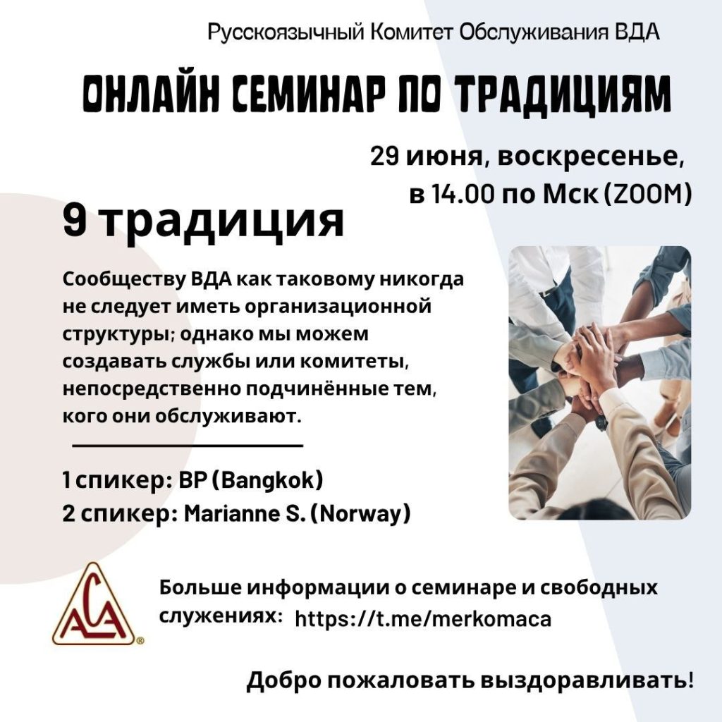 Russian Speaking Regional Service Committee #645 is happy to invite to attend open workshop on Twelve traditions.