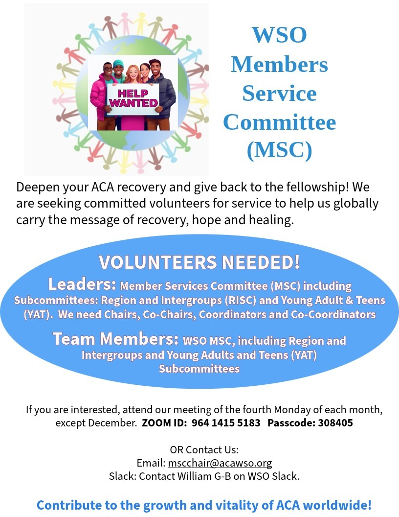We are a diverse group of members who come together to nurture other members, newcomers, teens, intergroups, and regions globally, and to share resources around the world.